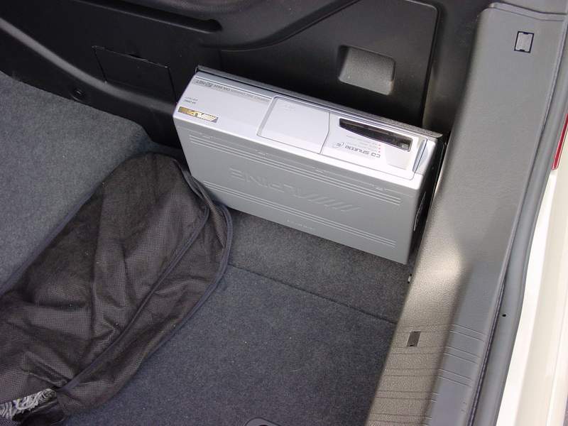 Does the CD changer sit on the front ledge of the trunk floor, or down in the bottom part? |