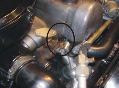 This is the interlock temp sensor for the CCU (climate control unit). If it fails, your heat will not come on unless you use the highest most settings first then back down to what you want. It is supposed to sense when the engine is warm and thus flip on the heat. Trust me...I know what it is...I've used it to control my glow plug circuitry to do special stuff... ![]() BTW the engine temperature sensor for the GAUGE is in the side of the head...near the glowplugs. |