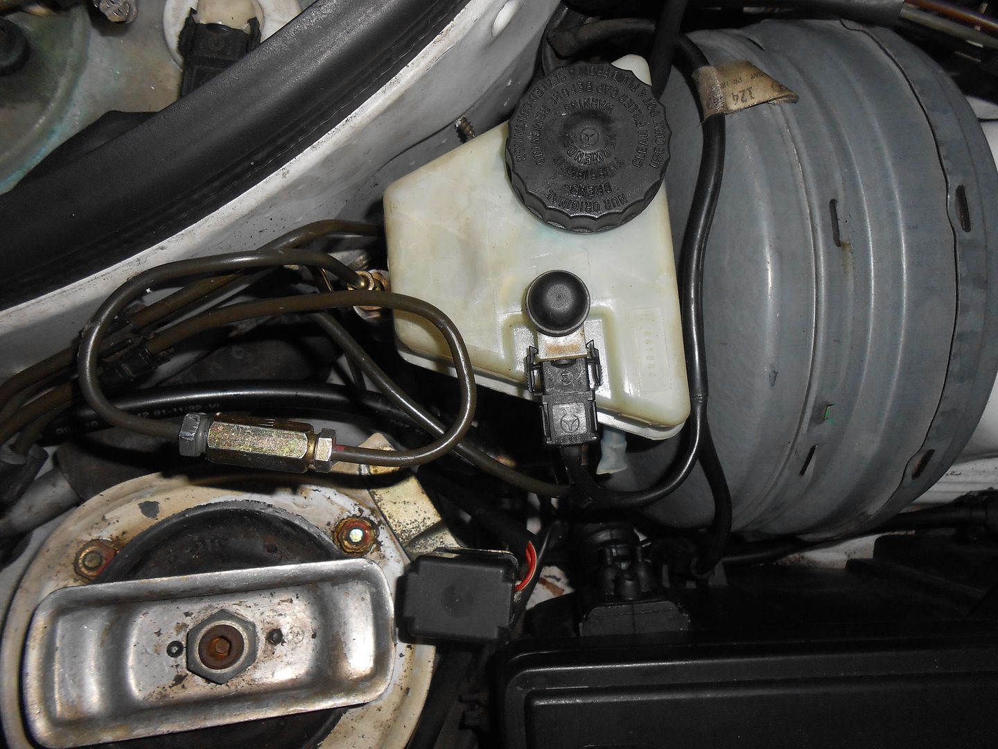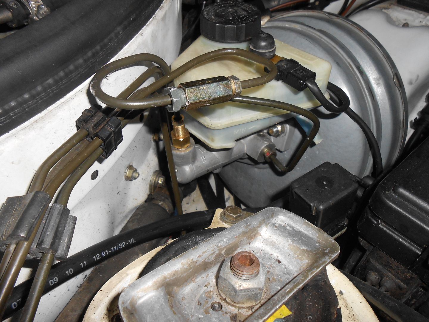 I pretty much gave up trying to get the right size tool when putting a R129 brake booster & master cylinder in my 1992 300D. I hadn't noticed when grabbing the part from the pick & pull that the two line ports where different sizes. My rear line was the wrong diameter to flare to the larger bubble required for the master cylinder, so I went to an auto parts store that had a slew of fittings, adapters, and connecting lines and came up with the configuration pictured here. Basically, it is a M12 to SAE adapter to SAE reduction with line to SAE to M10, and each piece fits into a size fitting for which it was factory made.