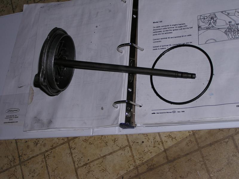 The pic shows the oil filter cap. You remove the two 13mm nuts on top, and lift off the cap which has a stem attached. The filter itself has a handle you lift it out with. The filters come that large "O" ring. There are also two small ones that fit in a machined channel on the stem, you may be able to make 'em out. You can get those at any auto parts store.