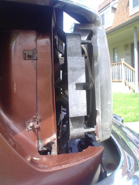 The first picture shows my car with the Euro headlights installed. The second picture shows the end of the air intake (the port to the right) which comes out behind the right headlight. The engine draws all its air from behind the headlight. I noticed one small hole on the bottom of the recessed headlight area and one small hole on top that allowed some (but much less than ideal) air to enter, which would explain how the car was able to run. The Euro headlights fit flush around the frame of the recessed area and use a seal to seal it. When the light is installed no air can enter this area except for the two small holes previously mentioned. If no air can get into the area behind the headlight, how can the engine breathe? The third and fourth pictures illustrate the two small holes as mentioned before where some air is able to enter but certainly not enough for the engine to perform properly! The fifth picture shows the Euro light fitting flush against the frame of the recessed headlight/air intake area and sealing it off. |