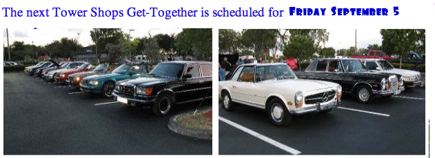 There will be a MB meet at Tower Shops in Ft. Lauderdale/Hollywood area on Friday Sept. 4 at 6PM onwards.