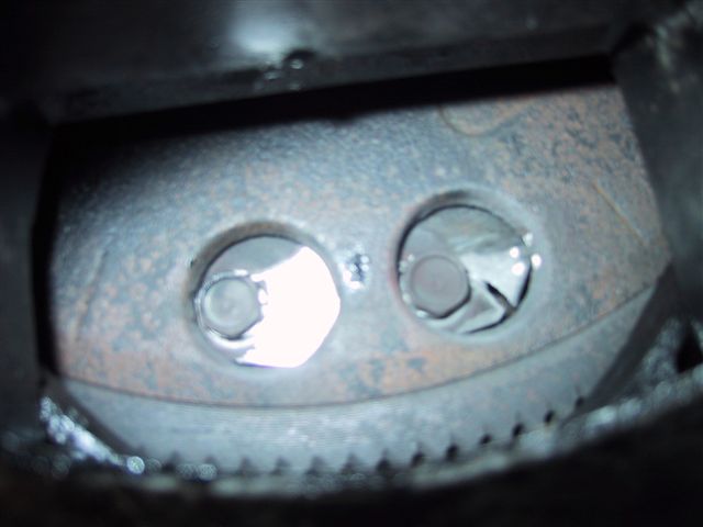The torque converter bolts can only be accessed by the window in through the starter hole or the upper oil pan shown in this pic. Picture courtesy of Konstan ![]() Here couple of pics I took of the torque converter installed, and driven plate. ![]() ![]() You can see only two bolts at a time show up so you'll need to rotate the flywheel to get to the other 4 bolts. ![]() .