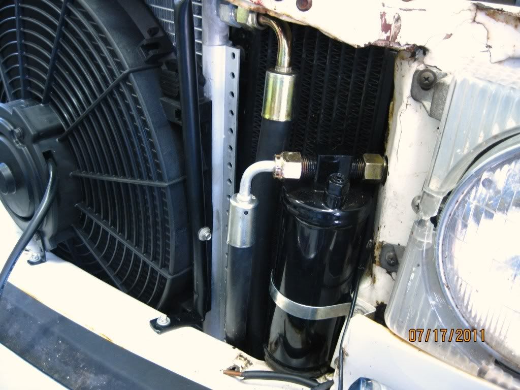 On my car the receiver bracket was part of the condenser assembly and it also used flare fittings instead of O-rings so when I replaced the condenser I lost the mounting location. Pic from the engine bay: ![]() My car also originally had a reduced diameter blue hose for the high pressure so I had to route the regular size #6 hose a different way.