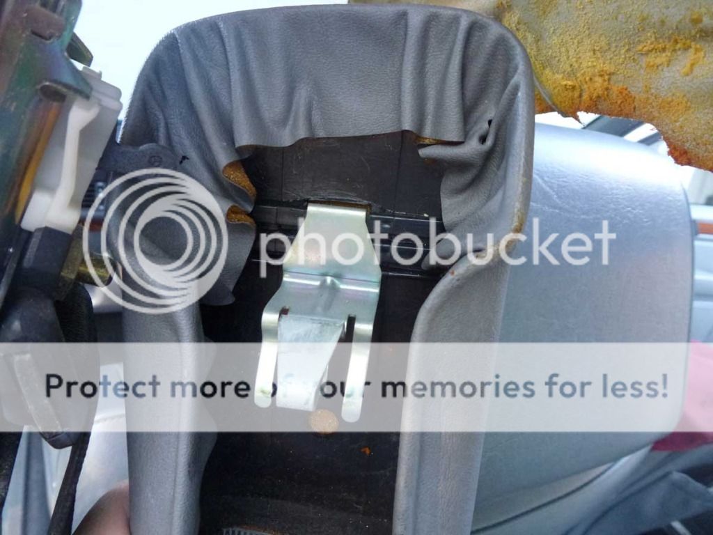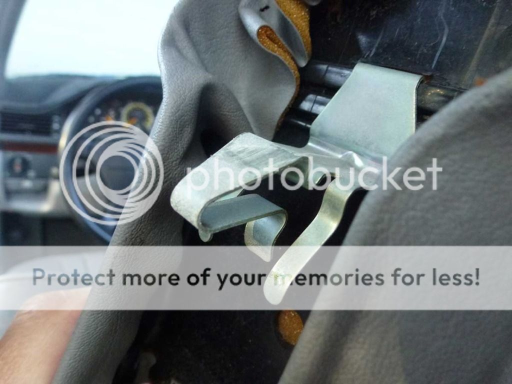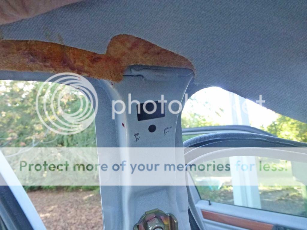 Here are three pictures of the B-pillar cover and the clip that holds it to the frame of the car at the top. The clip's spring action locks into that rectangular hole in the frame of the car. Pulling straight out should release it. It's also possible that the clip can be unhooked from the B-pillar. Put the clip back on the cover before reinstalling the cover. Putting the cover back in place isn't too bad except that you have to align the mechanism that adjusts the position of the shoulder strap of the seat belt. It usually takes me several tries. The B-pillar pictures were taken on my 1995 E300D but IIRC my '87 300D was the same. Jeremy http://i323.photobucket.com/albums/n...llar_20780.jpg http://i323.photobucket.com/albums/n...llar_20781.jpg http://i323.photobucket.com/albums/n...llar_20782.jpg |