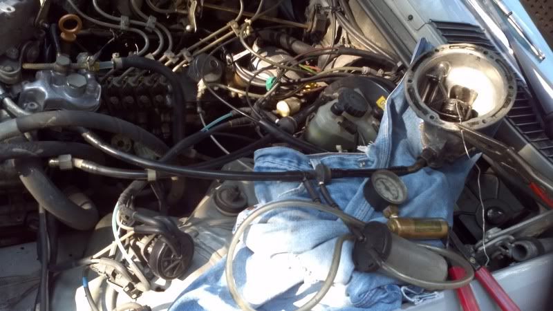 I rigged up another test using the vac pump in my 85 as the vac source. It only pulled 22" Hg, not enough to move and park the vac pump under test. I took a pic of the setup and will post it later. In the mean time I will look for a window air cond compressor for a stronger vac source.