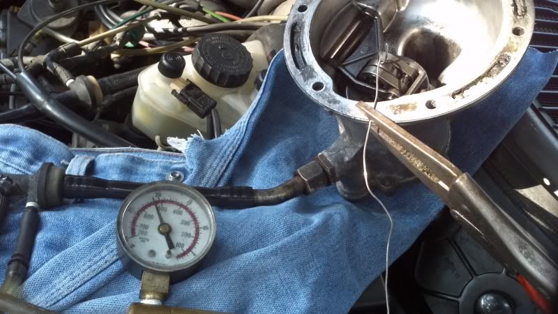 ![]() The wire clamped to the pump is a gauge to indicate if the cam follower moved or not. 22" Hg was insufficient to move it.