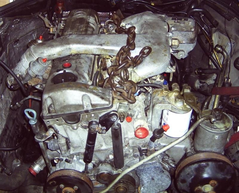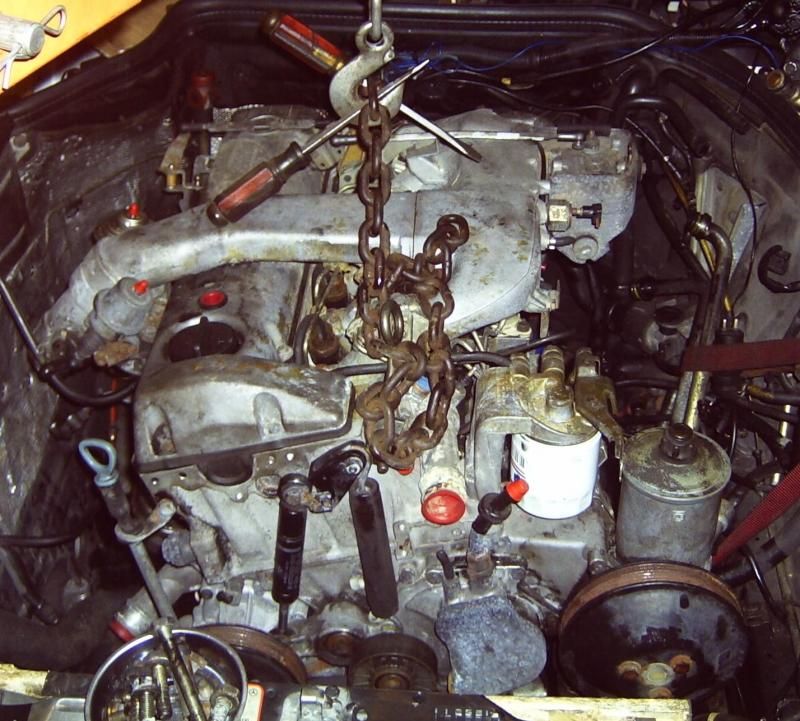 I will note that the replacement engine has no detectable blow-by, and seems to be (as claimed) a 140K mile engine. The only parts moved from the junk engine: * Oil level sensor, (electrical pin damaged in shipping). * New vacuum pump. Special observation for anyone facing this job.................................... #1. Remove the turbo and exhaust manifold BEFORE you start pulling the engine (it was much easier for me with head and oil filter housing removed)... #2. BEFORE installing the donor engine, Remove the turbo and exhaust manifold... #3. Change the oil and filter, pre-soak the filter before installing. #4. Wire down the shutoff lever... #5. Blank off the turbo oil feed and use the starter to build full 3-bar oil pressure (to minimize engine wear and avoid turbo damage). #6. Release the shutoff lever... #7. Start and run the engine with the turbo oil feed Blank off installed (to stabilize the oil and fuel system, verify engine condition and avoid turbo damage). #8. Remove the turbo oil feed Blank off... #9. Pre-lube the turbo = oil feed side, you want to see drips coming out the drain port. #10. Install the turbo. This shows the MASSIVE exhaust gas leak at both ends of the gasket = On a turbo engine this directly equates to Power loss. 1992 OM602 Exhaust Manifold Gasket Photos by whunter | Photobucket http://i21.photobucket.com/albums/b2...ps8b930d9b.jpg http://i21.photobucket.com/albums/b2...ps5705c787.jpg http://i21.photobucket.com/albums/b2...ps24521931.jpg . |