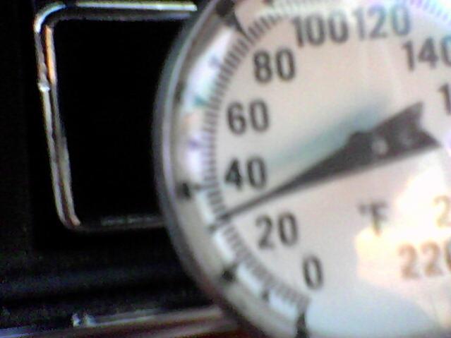I measured the vent temperature on my 240 today. I am running a 5 cylinder Sanden compressor, stock condenser and evaporator, R134a refrigerant, and the condenser fan running all the time that the compressor is running. It actually read 30 degrees for a second, but right as I took the photo, it went up to 31 (hard to hold the thermometer with one hand an take a photo with the other). When I took the photo, it was about 90 degrees outside here in So. Cal.