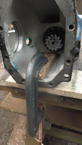 To apply the correct tightening torque to the output shaft nut you really need to hold the whole casing in place. http://www.peachparts.com/shopforum/...1&d=1389389126 I used a wood and a ratchet strap to stop the pinion shaft from spinning http://www.peachparts.com/shopforum/...1&d=1389389126 You really need to apply a whole heck of a lot of force to get the correct turning friction - you need to get to the stage where you think "I'm going to break this in a minute"! |