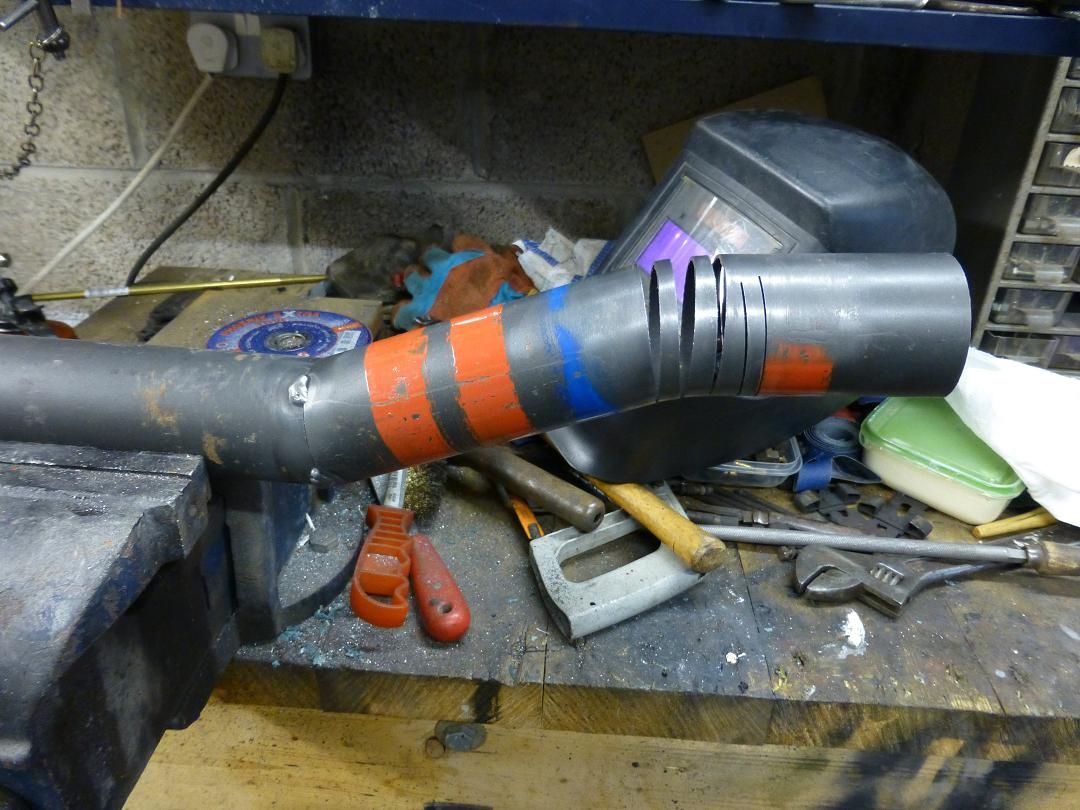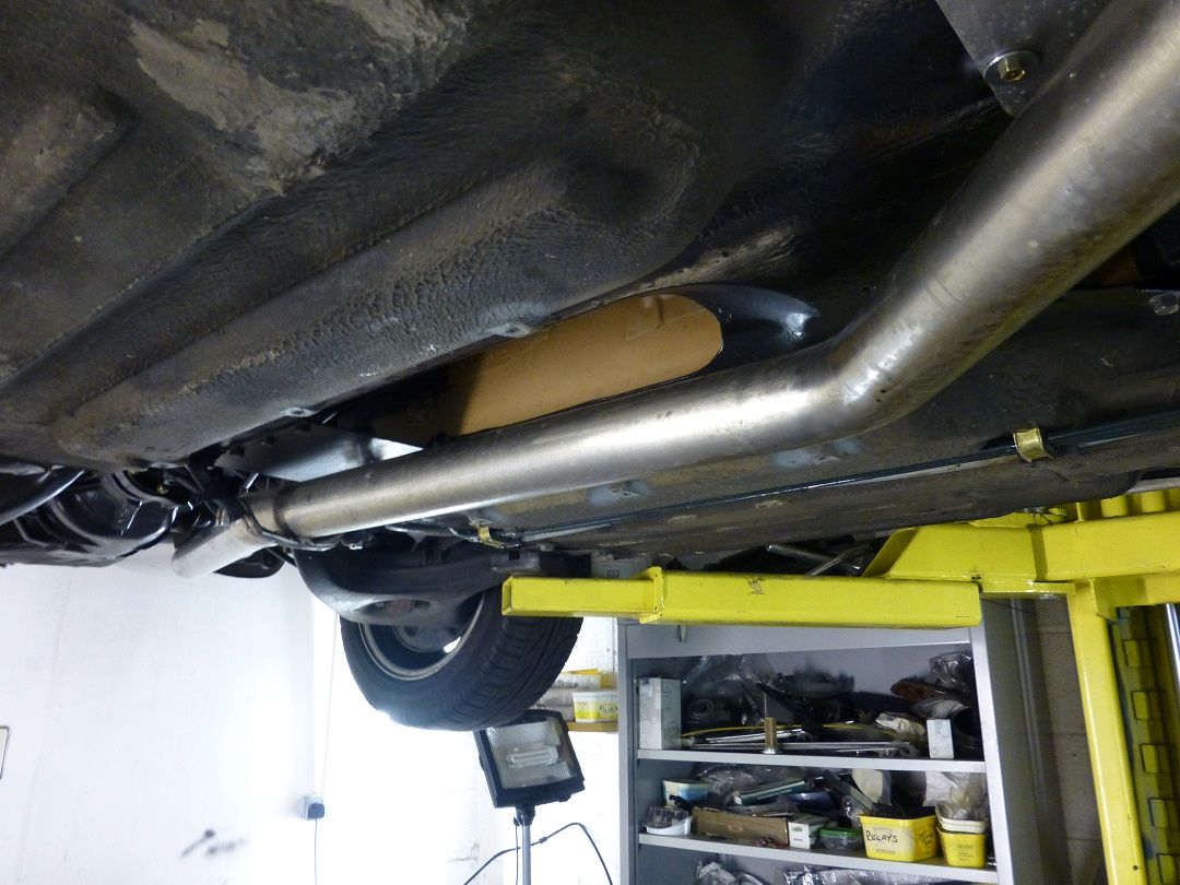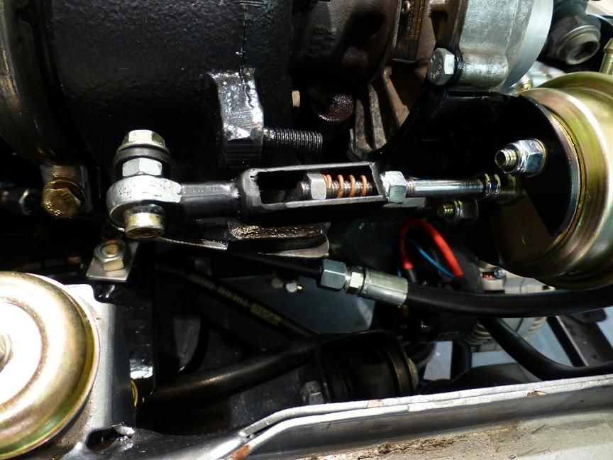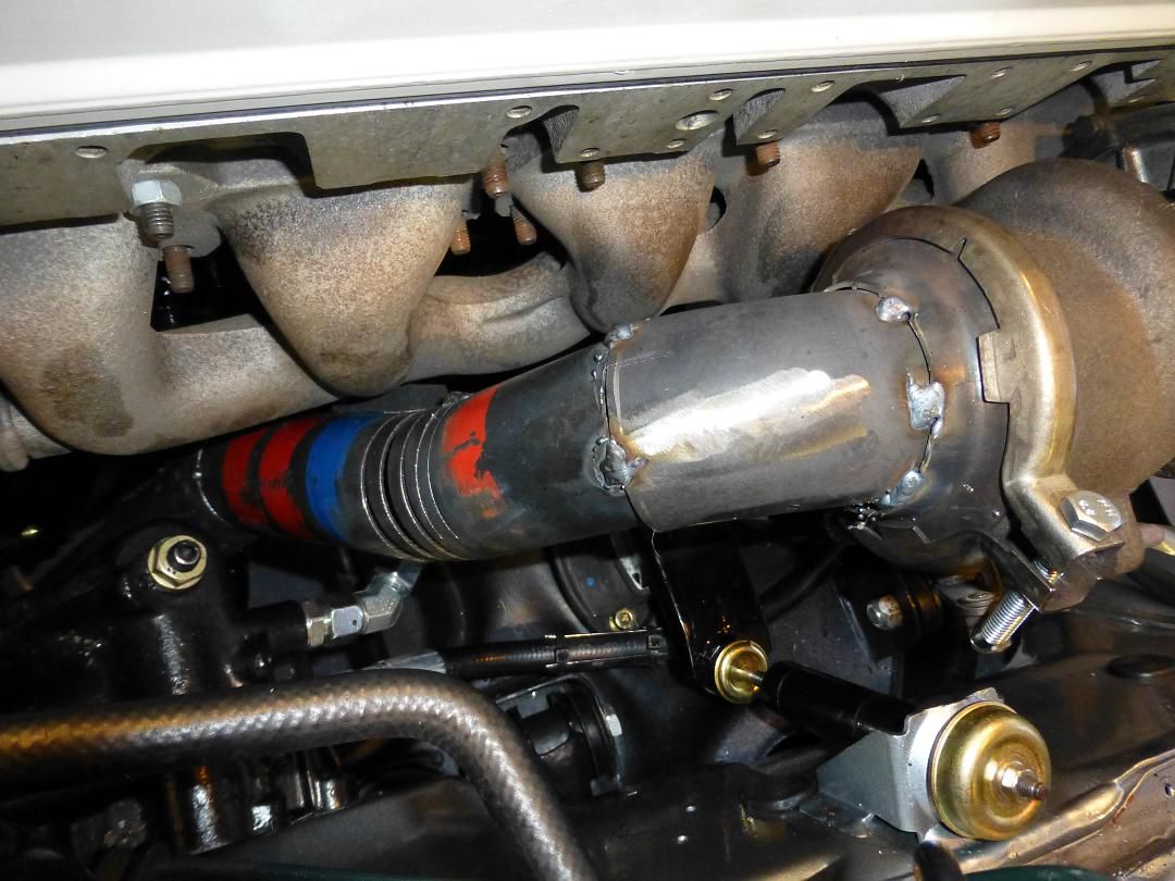 ![]() Turbo time. The new engine feet obstructed the original fitting place of the turbo so made up a 90deg adaptor that lifted it up and away from the manifold. Two flanges and a pre-bend pipe. ![]() ![]() ![]() That works but had the side effect of moving the turbo oil return away from its connection on the crankcase. ![]() So an ally spacer is made and the rigid pipe cut and joined with a flexible section. ![]() Wastegate. Original has vacuum operated unit. Since this car now has no vacuum operated anything (door locks are converted to remote electric) the wastegate is changed to pressure type. Make new bracket to mount this and sliding box with spring to ensure wastegate valve holds shut. Rose joint end to allow for slight arc of operating arm. ![]() The two nuts allow for very fine adjustment of the gate flap. ![]() Exhaust time. As some of the guys over on STD have discovered the biggest problem converting right-hand-drive cars can be the steering box interfering with the downpipe. The original 280 version had its pipe coming down in front of the subframe then under the center crossmember. That’s not an option here and to run it down between the ‘box and bulkhead was very tight for space. Using a tight bend where the pipe exits the turbo there is just room in front of the ‘box between it and the engine foot. Cut slots in spare length of driveshaft tube to allow shallow bending. Wedge it in place and weld to off-cut from 210 downpipe. ![]() ![]() ![]() Remove pipe, manifold, and strip turbo casing and send them off for ceramic coating. Meanwhile, graft new flexible oil supply pipe onto stub at crankcase. ![]() Where it joins main system under car, and bracket onto bellhousing. ![]() Happen upon local supplier of 60mm pre-formed piping bends in 316 grade stainless steel. ![]() ![]() ![]() ![]() Jumping ahead a few months this was found to be too noisy on hard acceleration and cruise so cut and add Cherry Bomb to middle section. That small silencer has a huge effect on the noise but little on the performance. ![]() ![]() Throttle. The oil filter housing blanked any real chance of utilising the existing rod and crank system so decided to go for cable system. Make new lever and attach this to throttle cross-shaft up above drivers footwell. ![]() Since this will be essentially a summer car there is no need for the fuel pre-heater on the cyl head. Remove this and make blanking plate incorporating throttle cable stop. ![]() . Last edited by Druk; 01-27-2014 at 05:19 PM. |