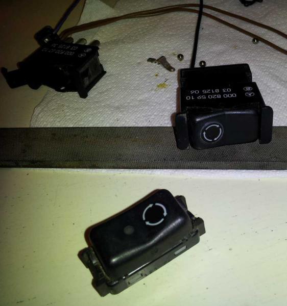 These next two are pictures of the recirculation switch. The w124 and w126 switches are a bit more complicated for what I am trying to achieve. They basically activate a relay and timer in the climate control panel for recirculation mode.