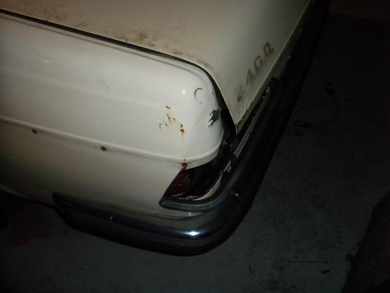 Trying to fix some rear end damage on a 240D -- long story. The car was rear-ended by a garbage truck that was backing up.
