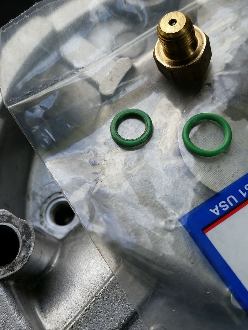 Just a week after filling the system with R12 R12 vent temp 85 300D 38.5F @ 87F ambient , I noticed a spot of oil on the driveway, right under the R4 compressor. Crawled under and saw bubbling green dye oil on the bottom lip of the R4 rear casing. I thought about resealing the R4 at first but since it pressure tested with no leaks (over time and under water), I took a chance and just used the old R4 as is. Well I lost 2.9 lbs of R12 due to old o-rings in the R4 and had to buy more parts and do more work.... R4 seal kit, receiver dryer (cut open to see how much oil was in it- there was none!), flush chemical (2 gallons of Kleen Strip denatured alcohol), PAO-68 oil.