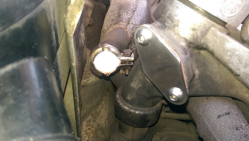 The EGR delete kit that I had was one that I bought on eBay or somewhere. It was all stainless steel. I didn't care for the bolt heads sticking up so tall, so I used rounded head bolts. It came with blue silicone water pump sealant (interesting) but I used copper silicone sealant instead. The stainless steel exhaust manifold plug was very thick and I could not get it to fit my 300SD a few years ago until after some hours of trying, I warped it enough that the clamp would barely fit over it and I could thread in the clamp bolt while holding the clamp with pliers. It was a total hassle and didn't seal but I didn't want to fight with it anymore. When I tried installing this same plug on the 350SDL, it just wouldn't work. The clamp would not close down enough because the plug was way too thick. The thickness of the metal on that end of the EGR valve was paper-thin, and if you put in metal that's any thicker, the clamp will NOT tighten over it. So, I took a jar lid that had a 36mm pop-up button that was the same diameter as the plug. It was already the perfect shape and size, so I used a Dremel tool and cut out slightly larger than the button (to 38mm) and used a file to smooth out the edges. Then I placed the newly made plug against the end of the manifold and tapped on the edges with a hammer so they would bend over the sides. After that, I used copper silicone sealant and the clamp fit right over it. I used brake cleaner to get the expiration date off of the paint. If the clamp makes the plug buckle at the open end, you'll have to remove the clamp and use a hammer to make sure the edges fit tight against the manifold end. If the end up the plug sticks straight out past the end of the manifold, the clamp will catch it and make it buckle. It has to fit tightly against the manifold first. http://www.peachparts.com/shopforum/...t-imag1368.jpg http://www.peachparts.com/shopforum/...t-imag1369.jpg |