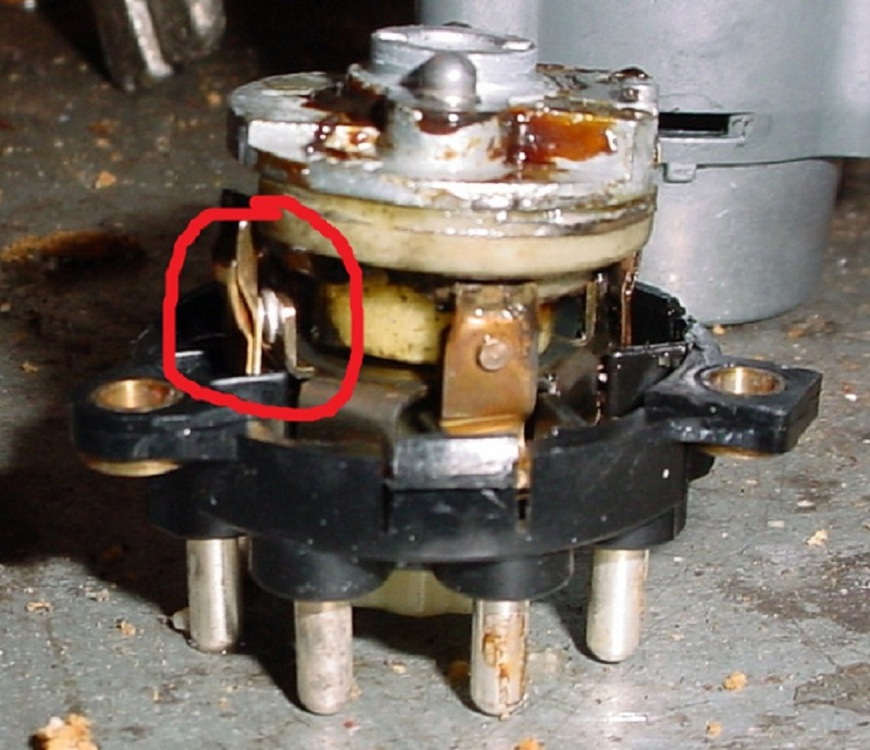 When the Steering Colum Lock is out inspect the Ignition switch. In the pic the circled area shows one side of the points is entirely gone.