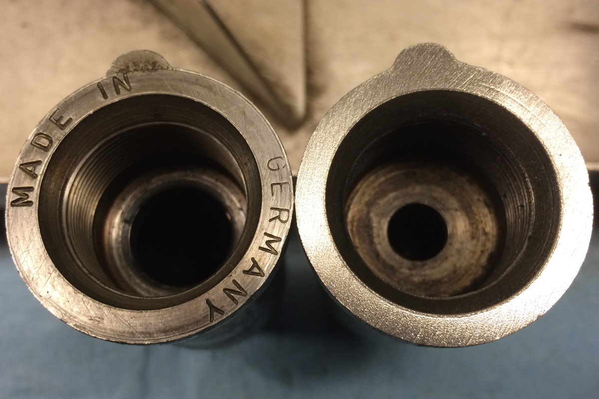 From what I can see online there are early style flat tipped ones for NA engines with the old style large diameter loop glow plugs (like mine), and there are flat tipped ones for NA engines that have a smaller hole for the pencil type plugs (OM616 in W123s, maybe NA 617s too). And then there are the rounded tip ones used in turbos. Not sure if rounded tip ones were ever used in NA engines. S-K also produced pre-chambers for these engines. I have several of these I got from U-Pull engines. The S-K chambers have a polished steel heat shield riveted into them, they don't come out. These are stamped "S-K" on their sides. FWIW the fellow I spoke with at the injection shop thought my busted nozzle needle problem had something to do with the car sitting for longer periods without being driven, gummed with fuel, etc. Maybe so. Maybe not. Thanks for the heads up. When I receive my "new" one I'll be sure to compare it closely to the others to make sure it is indeed the same. |