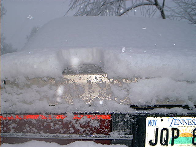 Snow on the back of my 92 Buick- all of this fell in about 2 hours - believe it or not- the next evening - it was ALL gone!
