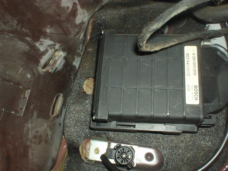 1984 300D turbo California car Burgundey ( should be banned from the board just for that), according the previous posts checked the pickup/sensor at the rear of the engine all OFF gives me 1.9k ohms, engine running about 900 I guess, getting 4 volts ac these both are ok, so the next thing I followed was the side kick panel passengers side, see attached pictures, the little plug towards the bottom marked EGR this thing will pull out as is captive but it can be turned/rotated and pushed back in I think six positions, ofcourse I did not not the original position anyone have the idea what it might be or how to determine what it should be, and is the black box the EGR controller?? Help Fareed