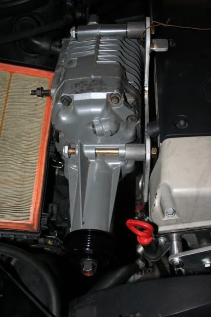 I got the supercharger mounting plate back from the fabricator. Here's the shots of it mounted for the first time. ![]() ![]() ![]()
