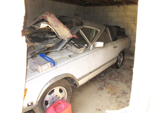 Just passing on a lead for you guys here: I went to look at (& passed on) an R107 Parts car that included a good amount of spare parts as well. There are a hell of a lot of parts there, I just don't have the time to deal with it all. This is in the Baltimore/DC area and I am not affiliated. I'm just passing it on to the community at large. Please PM if you are interested and I'll pass on the gentleman's info. Car is a '76 (apparently) Grey Market 350SL. White on Blue. Parts worth mentioning include: pair of nice Blue vinyl seats, good blue soft top on a frame/off the car, 2 hard tops (white one is rough, light/smoke blue one is decent), 1 nice hood (light/smoke blue, off the car, grille nice), 2 sets of American headlights, 1 set euro headlights, short euro bumpers (couple dents but not rusty), boxes & boxes of bits/bolts/electronics/wood/etc, working blower motor, extra set of under bumper aprons, brand new wheel arches (not installed), etc etc etc. The car itself is rough. Said to be running great with new injectors, but I didn't unbury it enough to confirm. He's cut most of the rust out of it (floors mostly gone) & has it prepped for used clean rockers (that come with it) and a homemade steel floor. I'd have grabbed it all for spares, but my 350SL is exactly opposite colors (blue on white). Plenty there for his $1500 asking price. Again, NO AFFILIATION. Just passing it along. ![]() ![]() ![]()