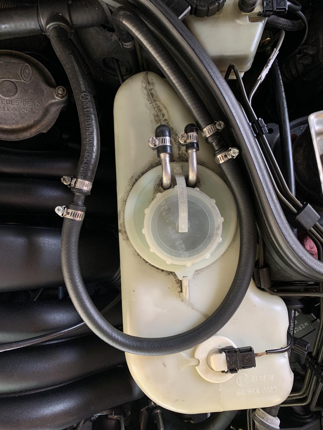 THANKS, I appreciate your time. If anyone else can add, great, please do. I'm new to MB's! I'm headed to NAPA for heater hose, worm gear clamps, and 2 different hose couplings; ONE 5/16" to 3/8" step-down and ONE 3/8' TO 3/8" AND a 3/8" 1 foot long hose. I BYPASSED the coolant lines at the tank and never have worry about leaks or coolant/washer fluid swaps again. Bypass pic posted below. I capped off the washer fluid lines and worm clamped them too. $23 to complete. No leaks from washer tank yet and the MB dealer had one in stock! The stock grommet had tighter hole for the pump to slid into VS the original grommet that leaked when I pulled the pump off. I guess they reinvented it. The dealer did say the 2 grommets for the thermostat on the heat exchanger COULD be ordered separatly as well as the thermostat (MB calls it a pump) also FWIW. For future ref in this thread see below links. OK, FOUND --------> https://www.pelicanparts.com/techarticles/Mercedes-W124/17-WATER-Windshield_Washer_Reservoir_Pumps_and_Level_Sender_Replacement/17-WATER-Windshield_Washer_Reservoir_Pumps_and_Level_Sender_Replacement.htm ALSO: https://www.youtube.com/watch?v=BjWBXIdYHU4 Last edited by jetspeed; 09-15-2021 at 01:38 PM. |