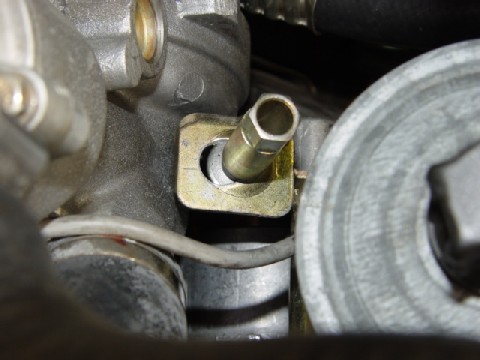 You need to thread the nut onto the bolt, put the collar onto the tensioner (rod goes towards the engine side), and put this whole mess up through the bracket. One tip is to thread the nut down so the tip of the rod is about even with the top of the nut 9up even with the top of the hex part). Hope this helps Gilly ps Look at the bottom part of the nut, it's UNDER the bracket: http://www.peachparts.com/shopforum/attachment.php?postid=482113 |