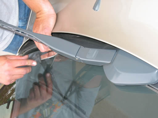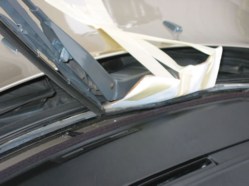 I had the Windshield replaced on mine a while back and tried out my new digital camera. The installer used a cardboard shim - didn't need to remove the wiper. Here are the pics on the shim process (right about the time the camera battery died, so I don't have the shots of him using the electric caulking gun or placing the glass ).1) Removing the trim retaining clips on one side so glass can be removed. Damaged glass area is from a large chunk of metal which fell off a car in front on the freeway. 2) Clips removed - re-attached with rivets later 3) Removing the lower windshield trim 4) Cutting out the lower windshield seal 5) Cardboard shim in place, ready for tape 6) Cardboard shim taped and pulled forward, ready for glass placement. ![]() A detail tip: If you want to replace the white 'Daimler' sticker from the detailer, get the sticker before you do the windshield. Have the glass installer place your damaged glass on the bench, put down some towels, and lay the new windshield on top of the old one. Line up the new Daimler sticker over the old one, and apply. Can't help with the blue factory inspection sticker, however, as there are no replacements for those, according to the dealers. Also, according to the installer, an electric caulking gun and uniform bead were essential to a leak-free replacement windshield. He used the PPG glass with the factory star from the dealer. PPG has proven to be very soft and prone to pits when I had my C230 done several years ago. I wanted Sigla or Sekurit, but he spent a week trying to find these brands, and they weren't available in LA or Orange county at the time, except as used items. PPG now makes the MB factory glass, and the other 2 brands are very hard to find, apparently.