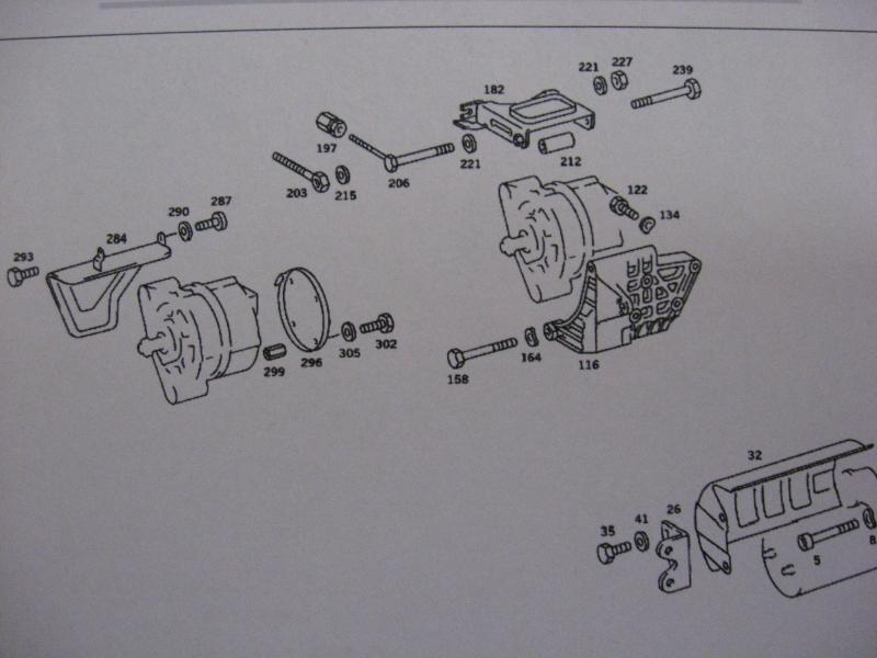 Hi. 1980 300CD with the alternator pivot bolt head busted off . Rusted to the bracket. So i proceed to junk yard, get new bracket and alternator of of car and come home to try to remove the whole thing. The bracket i speak of is the one bolted to the engine and the alternator and adjusting bracket are bolted to it.