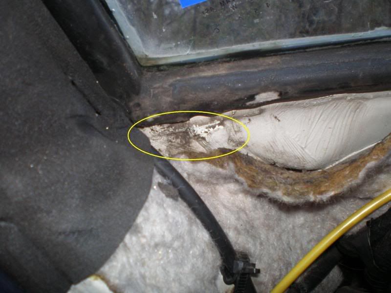 I removed the dash today to wait for the next rain: http://i29.photobucket.com/albums/c2...85Stuff104.jpg http://i29.photobucket.com/albums/c2...85Stuff107.jpg Scary looking eh? I must say, I will never again remove the dash without removing the steering wheel first. It is very easy and quick to do, and makes it so much easier. Anyway, with the dash off I was going to wait for the next rain and go out and sit in the car, but I just pushed on the seal right in the driver's side corner and a couple drips of water came out from there. http://i29.photobucket.com/albums/c2...85Stuff109.jpg http://i29.photobucket.com/albums/c2...85Stuff108.jpg So, I need to have this windshield resealed and have the one in the Squash replaced. {huge cracks and mucho pitting} |