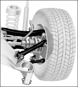 Another item that goes bad is the bushing between the control arm and the knuckle. I can't find a picture of the fitting but the part is available from Phil. A quick though inconclusive test is to tighten the lugnuts with the car on the ground (is there another way?). If the wheel shifts relative to the car, that bushing is probably bad. Of course an upper diagonal strut (described above) with worn bushings can have the same effect. There's also the control arm inboard bushings and the 4 subframe bushings. I'll bet the swaybar end links are a little worn too. Sixto 87 300D |