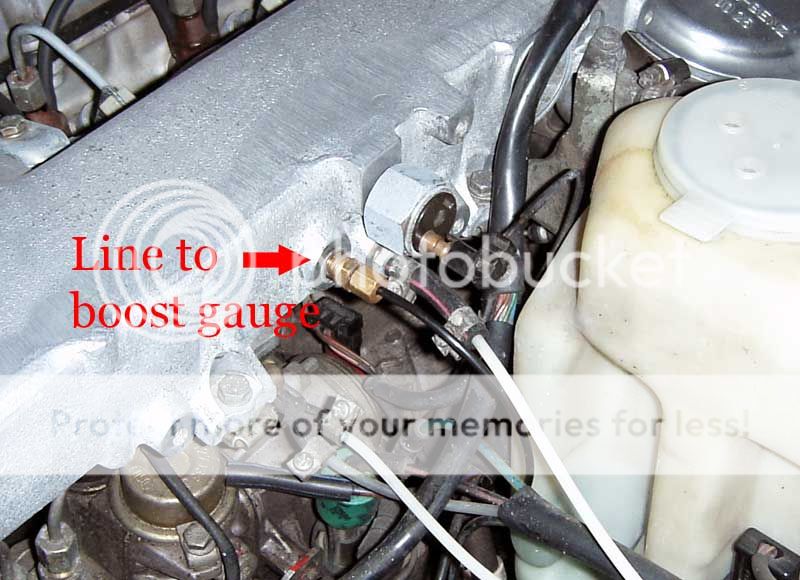![]() There should be an extra 10mm port in your intake manifold, next to the overboost protection switch, closed off with a plug. Get a 1/8" NPT to 1/16" tubing adapter; it will screw into the 10mm hole as the two threads are almost the same. Use TeflonŽ tape to prevent leaks and don't overtighten. ![]() You can get tubing kits along with the boost gauge from egauges.com. Run the tubing through the firewall and to wherever you want the gauge. Remember that your engine will show no boost at idle and very little even if you rev up the engine. The engine must be under load (you have to drive the car) before much of anything will show on the boost gauge. If your turbo is set up correctly, boost should top out at about 13 psi. At a steady freeway speed the boost should be about 5 psi. Jeremy