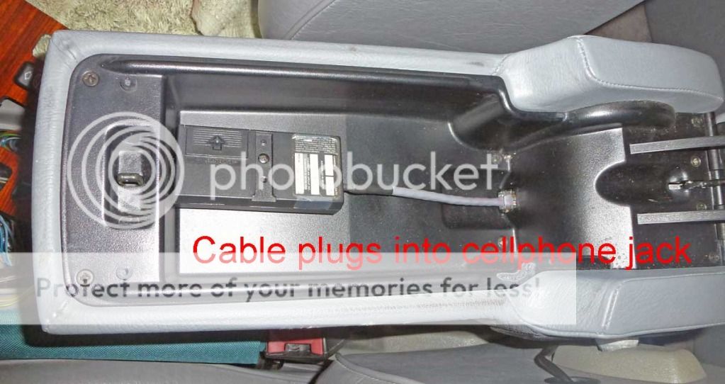 Late W124 models have the option of an armrest-mounted cellphone; the wiring is in place whether the cellphone was installed or not. With the help of GSXR (Thanks, Dave!) I found the cable under the seat and rerouted it to use with my garage door opener. Here’s how I did it. You’ll probably think of other uses so please suggest them.