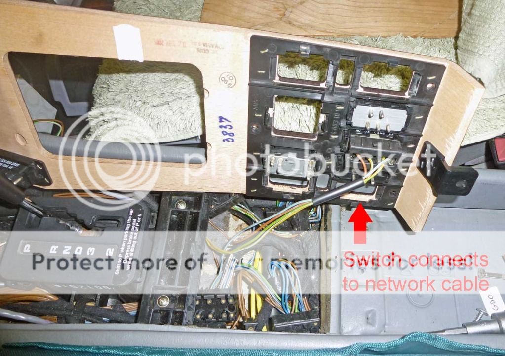 The cable from the cellphone comes out of the armrest, passes through the driver’s seat and dives into the carpet, never to be seen again. It turns out that there’s a plug and socket in the cable hidden under the carpet. If you pull them up you can plug in your own device. http://i323.photobucket.com/albums/n...hone_40684.jpg http://i323.photobucket.com/albums/n...hone_40685.jpg http://i323.photobucket.com/albums/n...hone_40686.jpg http://i323.photobucket.com/albums/n...hone_40687.jpg Please note that the connectors are RJ-45 (8 pins) network connectors. Standard 2-, 4-, or 6-pin telephone cables WILL NOT work. I used a female-to-female adapter and a network cable from my junk box. The cable was pulled under the carpet and up into the console. http://i323.photobucket.com/albums/n...hone_40688.jpg The only switch with SPST momentary action that I could find in my collection was a rear window washer switch from a T-sedan (“station wagon”). Actually, it’s DPST but I ignored one set of contacts. The switch was installed in one of the positions in the “limo wood” console panel, available from Mercedes as an option for all 124s (124 683 38 37). http://i323.photobucket.com/albums/n.../GDO_40668.jpg Only four wires are used so I removed the unneeded contacts from the socket. Two wires connect to the network cable for the garage door opener and two wires power the illumination of the switch. http://i323.photobucket.com/albums/n.../GDO_40701.jpg A short stub of network cable was added to the opener in parallel with the existing switch. The opener can be removed from the car by unplugging the network cable from the armrest. This allows the opener to be used outside of the car and also makes changing the battery easier. http://i323.photobucket.com/albums/n.../GDO_40698.jpg The opener now lives in the armrest where it’s out of the way yet easily accessible if needed. It has no problem from that location opening the garage door. I padded the opener with a spare pair of gloves so it won’t rattle. http://i323.photobucket.com/albums/n.../GDO_40700.jpg Obviously you don’t have to use the same switch or the same switch location as I did. Wherever you put the switch, make sure it’s in a location where it can’t be accidentally pressed. You don’t want the cat opening the garage door in the middle of the night. There have to be other uses – 8 wires is a lot, you could install an MP3 player, for example. Use your imagination! Jeremy EDIT: To remove a source of confusion, I changed the second sentence, which formerly read in part, " . . . I found the cable under the seat and rerouted it to use as a garage door opener." The sentence now reads "with my garage door opener." |