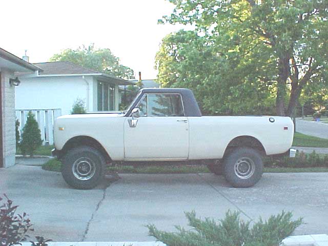 Guy couldn't get it started and gave up. Turned out to be a frozen fuel line, the water was coming in through the filler neck (right behind the pass FRONT wheel!). Got that all straightened out, tuned it up, new cooling hoses, and a exhaust. After all of this the total comes to about $600, not too bad! They call it a 1971 International 1110 It’s a 304 V-8 with 3 on the tree and NOTHING power. Only one belt for the ALT and water pump!!! (Ok I lied it has one of those electronic musical horns from the late 70's and it works) I only bought it to get around while I get the Benz project completed, so I think it will serve its purpose well. It is ugly, but runs like a top! Even the cig lighter works! At 15 MPG I could be driving almost any SUV and get the same – but I only had to pay 600 one time, not once a month…… Sure haven’t come a long way on efficiency eh? Have any of you seen such a creation - I am young and have never seen anything like it! Anybody know anything about these engines ect? Seems to be allot better built than the American trucks I have seen (steel vacuum lines!!!????) Just a curious piece - I won't do anything else to it but oil changes and sell it.