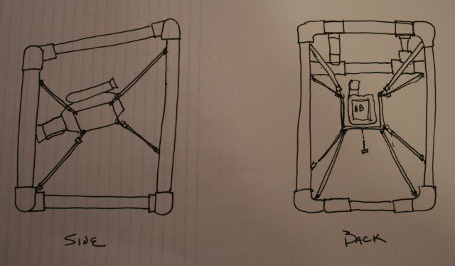 Here's a picture of a rig I made my buddy years ago for him to run a video camera in a helicopter. He just strapped it in the seat next to him. Make the "U" shaped piece under the camera out of 1/4" steel to increase the mass of the camera. The frame is SCH 40 1.5" PVC. For the suspension, simply use bungies. You'll have to wrap them tightly to keep the camera from wallowing and nodding. It's just a matter of experimenting until you find the combination that works. To tighten up the bungies, simply wrap more turns around the frame. Drill a 1/4" hole in the bottom of the mount and use the tripod mount hole in the camera to secure it. This makes it easy to remove and to operate the controls.