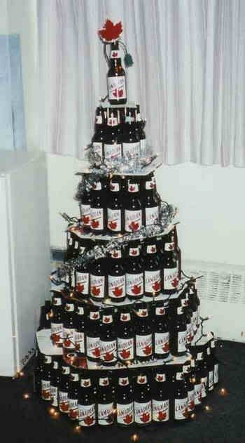 I couldn't find a beer "can" tree but these are pretty cool: